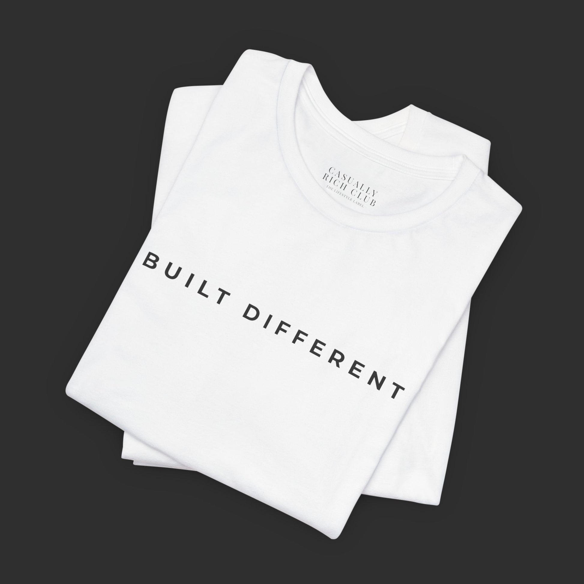 Effortless flex. Clean design. No explanation needed. This men’s regular fit tee features a bold front design that says it all: Built Different. Crafted from soft, breathable cotton, it’s ideal for everything from gym days to weekend hangs. Lightweight and easy to layer, this staple tee gives you confidence on any day you want to show up with quiet strength.