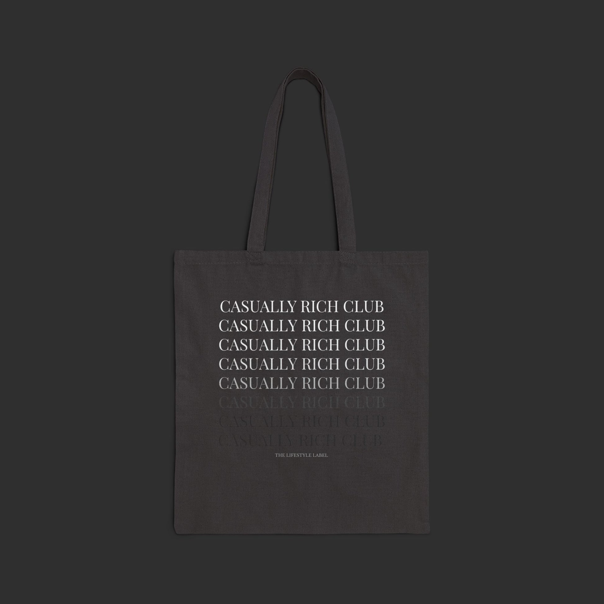 Double-sided design. Everyday luxury. This 100% cotton canvas tote features our signature faded Casually Rich Club logo on one side and a clean minimalist design on the other—giving you two versatile looks in one premium bag. Whether you’re headed to the market, beach, gym, or casual lunch, it’s the perfect grab-and-go essential for those who move with style and purpose.