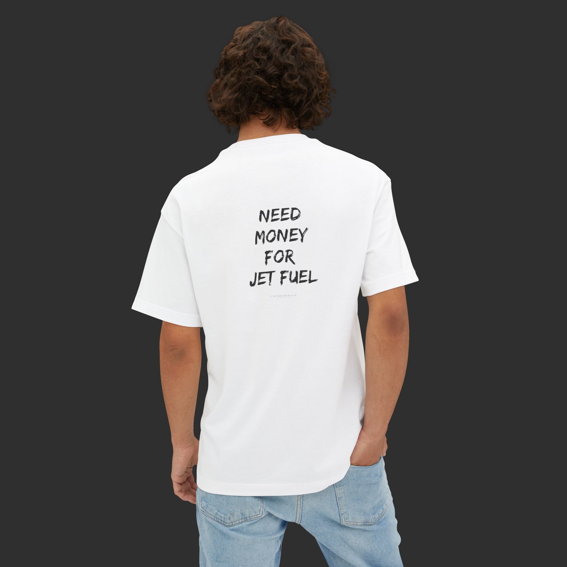 Jet-setting energy. Relaxed comfort. This Relaxed fit boxy tee is for those who live fast, dream big, and move differently. With “Need Money For Jet Fuel” boldly printed on the back, it’s a confident nod to ambition and high-flyer goals. Its relaxed silhouette, premium cotton finish, and statement vibe make it your go-to for any off-duty look.