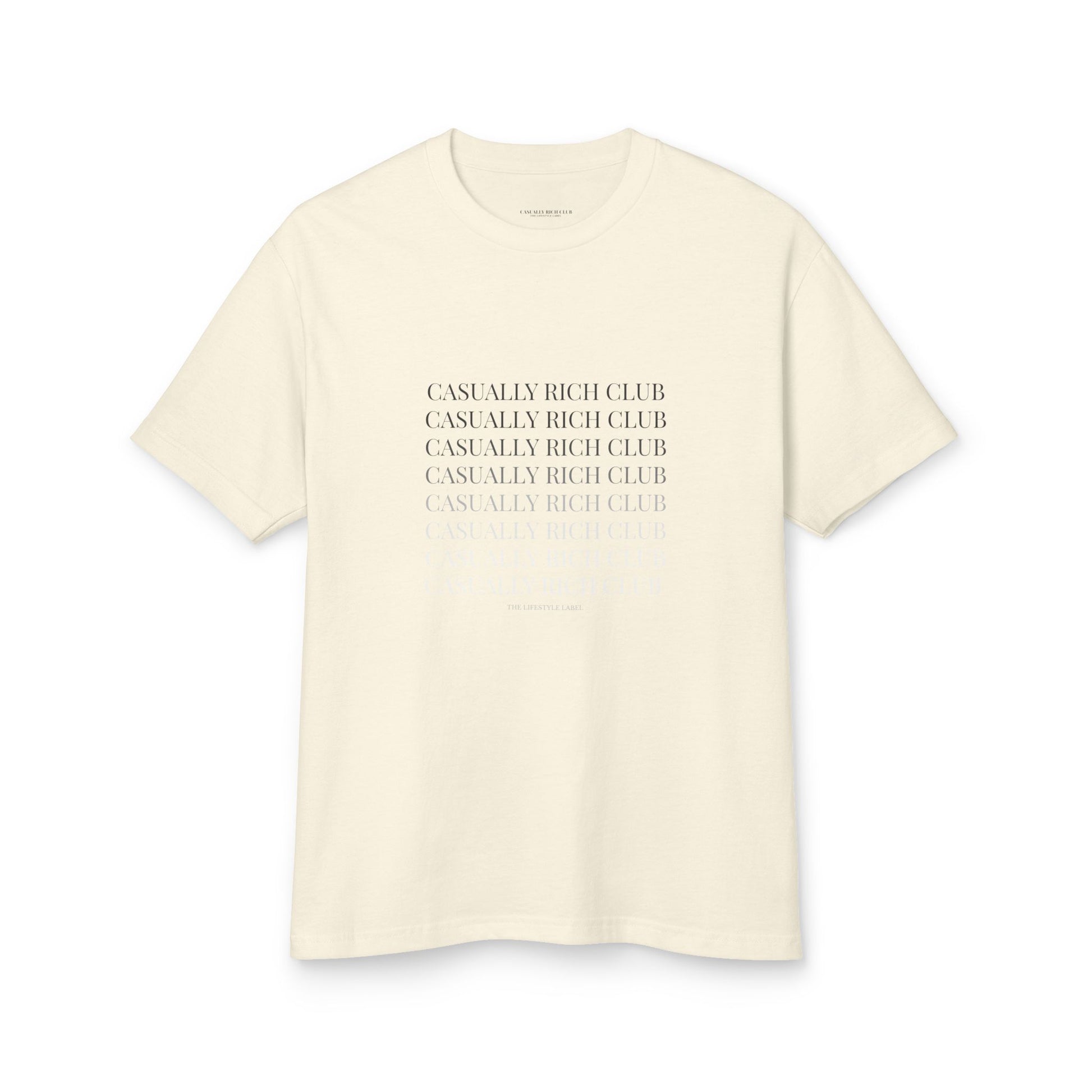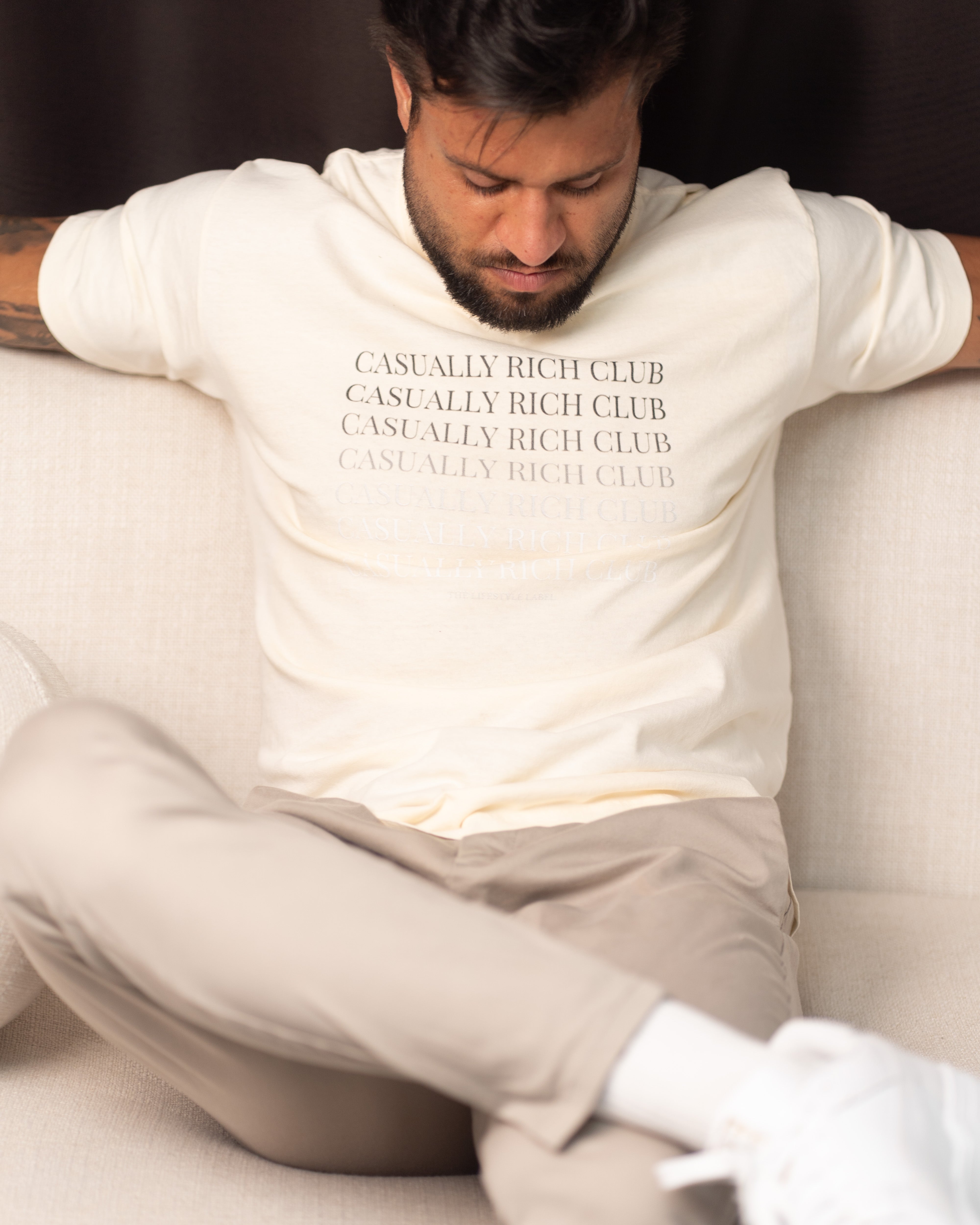 The Monochrome Flow Tee introduces movement without noise — a repeated Casually Rich Club wordmark that transitions from black to grey to white. It reflects progression, not performance. Change that doesn’t need to be announced.