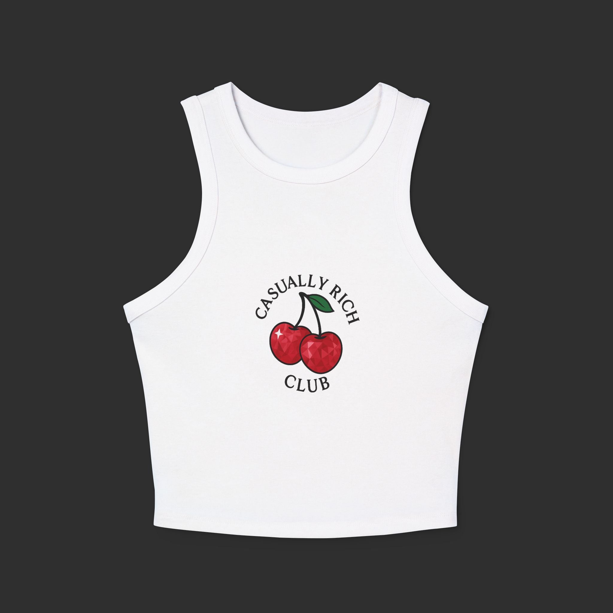 Playful meets polished in the Rich Cherries Tank, a sleek women’s racerback cut designed for movement, style, and versatility. Featuring a subtle front graphic — cherries encircled by the Casually Rich Club name — it’s a minimalist statement with a flirtatious edge.